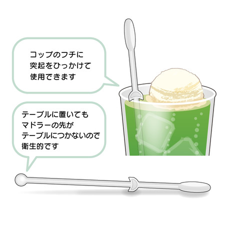 ステップがついているので、コップのふちにひっかけることができ、置くと自然に先端が浮くので、衛生的な商品です。