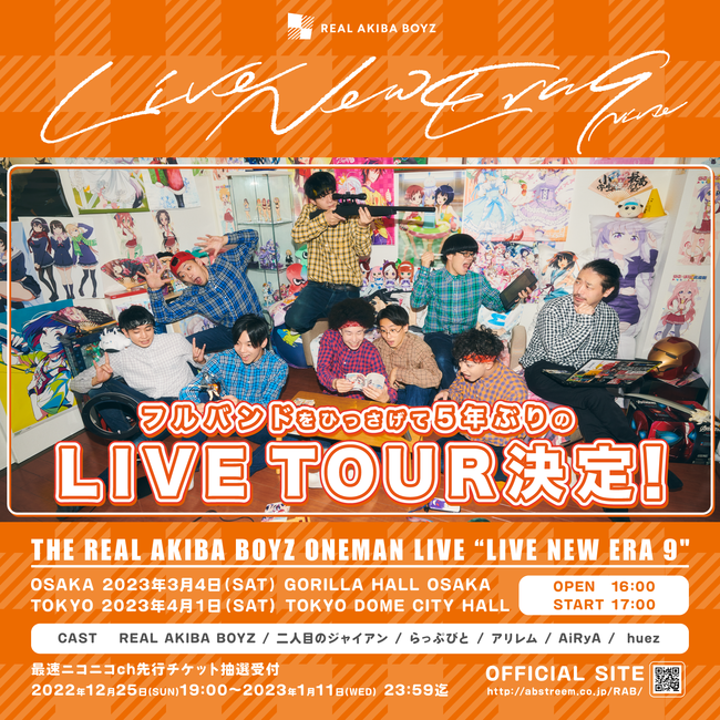 REAL AKIBA BOYZ、2023 年 春に大阪・東京で 約 5 年ぶりのフルバンド編成ライブツアーの開催決定!