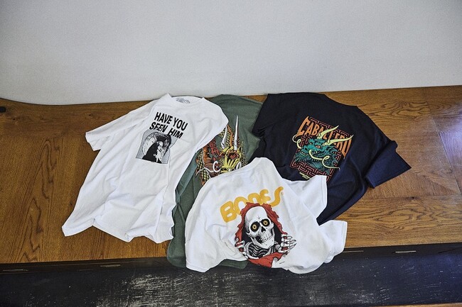 オープンスタジオでのポップアップでは、老舗スケートボードブランド「POWELL PERALTA(パウエル・ペラルタ)」のオリジナルグラフィックTシャツも販売いたします。