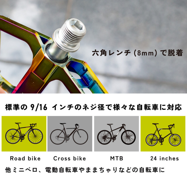 ロードバイクやクロスバイク、MTB、ミニベロやピスト、ままちゃり、電動自転車に。