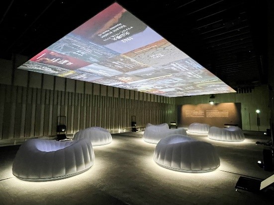 また、7つの都市の井戸の上を覆うように、天井には世界中で発生した災害の記録が表示されており、私たちの世界が多くの災害に直面していることがわかります。