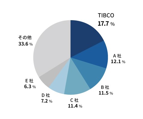 同レポートによると、2021年度の製造業におけるデータ分析/レポーティング市場でのTIBCOのシェアは17.7%を見込んでおり、第2位の12.1%を大きく引き離して第1位の実績とシェアを獲得しています。