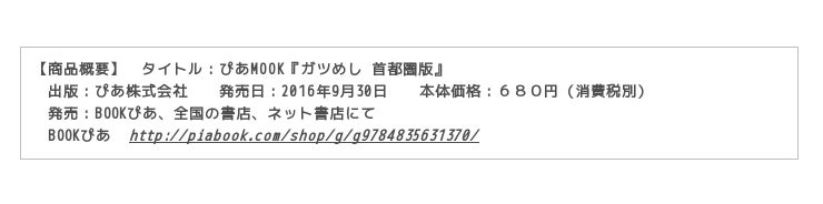 メガ盛りも!ガツ呑みも!特典も!ドカンと170店!! ぴあMOOK『ガツめし首都圏版』本日発売