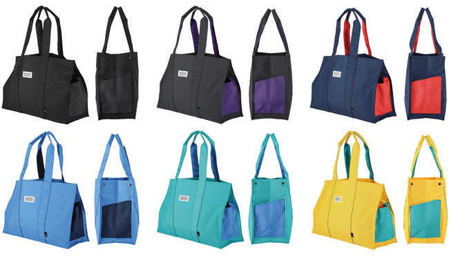 SN.ミディアム.e.color-A 4,290円(1438 01 BLACK、02 GRAY、03 NAVY、04 BLUE、05 GREEN、06 YELLOW)サイズ:W44×H30×D17cm 持ち手:54cm 素材:ポリエステル ポケット:外側1箇所、内側2箇所 ※3月中旬より発売中