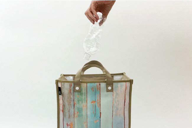 場所を問わずゴミ箱として使うことができるトート。市販のゴミ袋をセットして使えます。