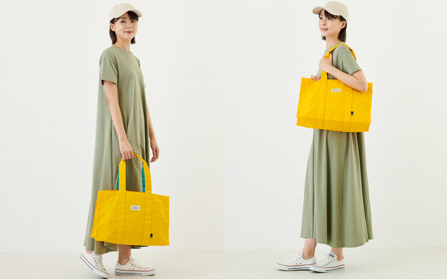 パッと目を引くポジティブなカラーリング。ルーポケットの配色がアクセントになっています。持つことで気持ちも明るく、お出かけも楽しくなるような元気をくれるトートです。