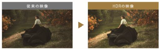 HDR対応により、表示できる明るさの幅が広がり、色の表現力が上がるため、より一層美しい映像が楽しめます。