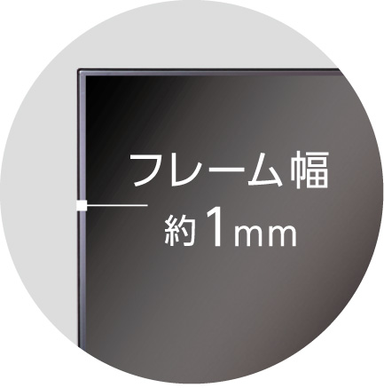 従来品に比べフレーム幅を薄くすることで、より大きく画面を感じられ、迫力ある映像を楽しめます。また、多くのレイアウトに調和するデザインです。