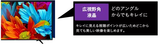 広視野角液晶を採用することで、自然で美しい映像を再現するとともにどのアングルからでもむらなく、くっきりした映像を楽しめます。