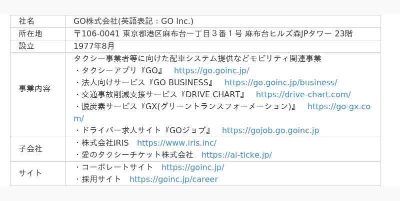 GO株式会社は、「移動で人を幸せに。」をミッションに掲げ、モビリティ領域を軸とする多様な事業・サービスを展開しています。協働パートナーの皆さまとの共創力と、テクノロジーを最大限に活用する開発体制のもと、時代に合わせた「移動」のアップデートを通じて、日本の社会課題の解決を目指します。