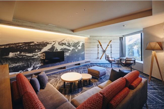 部屋はスキー旅に嬉しい機能とデザインを兼ね備えたスキーヤーズスイートルームです。室内には、スキーブーツを乾燥できるブーツヒーターを装備。実際にトマムのゲレンデで使われていたシングルリフトをリメイクした椅子や、クラッシックな木製のスキー板をオブジェとして設えました。ホテルからは、ストレスなく直接ゲレンデへスキーインスキーアウトできます。滑走後には、展望ジェットバスやプライベートサウナでゆったりと心と身体を整えられる贅沢な仕様。さらに、最終日は荷物の多いスキーヤーに優しい14時のレイトチェックアウトで、最終日の滑走後も安心して帰りの支度ができます。