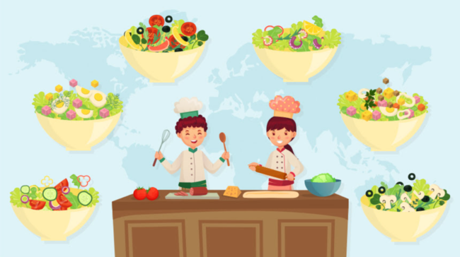 春休みの自宅学習にも。世界のサラダを自分で作ってみよう!キユーピー公式サイト内の食育コンテンツ『食生活アカデミー』に「世界のサラダを調べよう!つくってみよう!」を公開