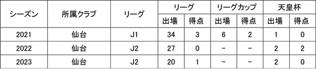 所属歴/尾山台サッカークラブ - ヴィトーリア目黒FC - ヴェルディS.S.アジュント - 流通経済大学付属柏高校 - 流通経済大学 - ベガルタ仙台