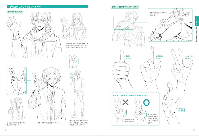 LESSON2 感情と気分の状態を表す手:「喜怒哀楽+驚狂無和」の8つの気持ち、アイドル男子の手の演技ポーズ、女子っぽさと男子っぽさの描き分けのポイントなど