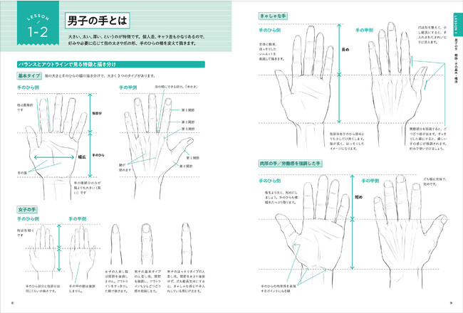 LESSON1 男子の手 概論・手の基本・構造:男子の手の構造、手の描き分けなど