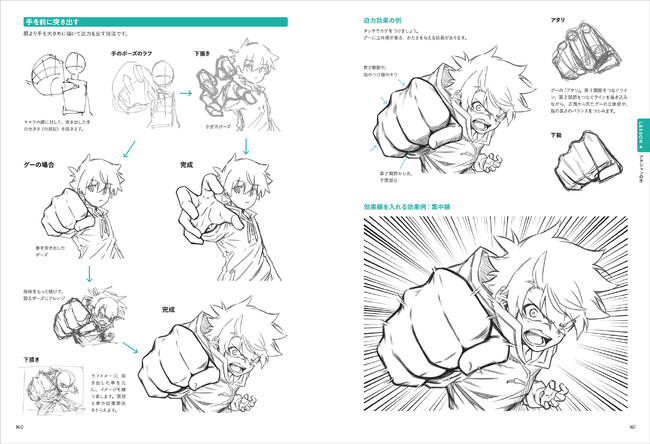手の表現ひとつで、キャラクターの感情は大きく変わります。本書では【手の演技&演出効果】の実例を、豊富なイラストでビジュアル解説! 手だけでなく顔の表情やポーズなどバストアップで掲載。ラフや下絵などの作画途中のイラストも多く紹介しているので実践に役立ちます。