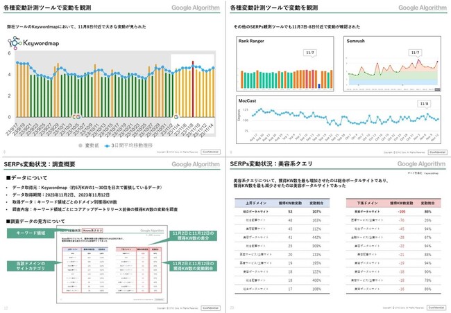 株式会社CINC(東京都港区 代表取締役社長 石松友典、以下 CINC)は、自社で開発・提供しているWebマーケティングの調査・分析ツール「Keywordmap(キーワードマップ)」を活用して、2023年11月3日にGoogeからリリースされた「November 2023 Core Update」また「Reviews Update」について調査した一次見解レポートを公開しました。
