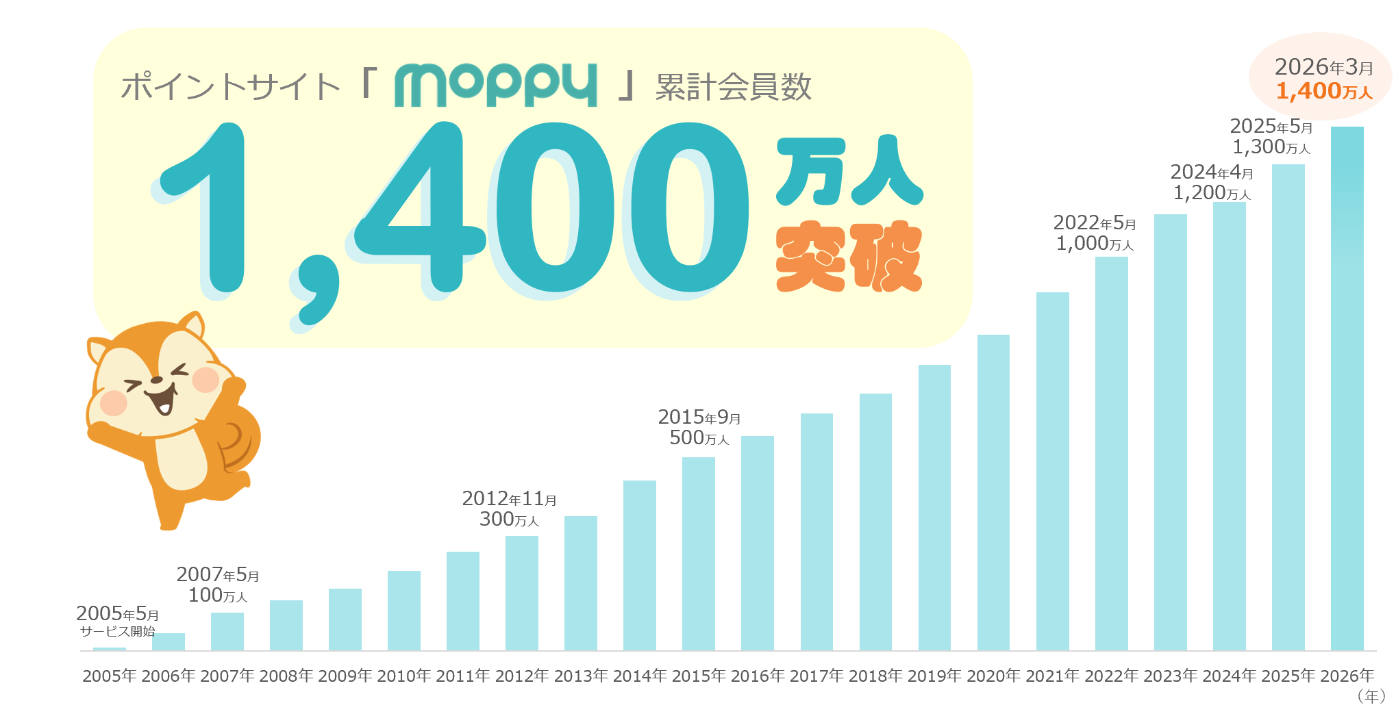 ポイントサイト「モッピー」の累計会員数が1,400万人を突破!