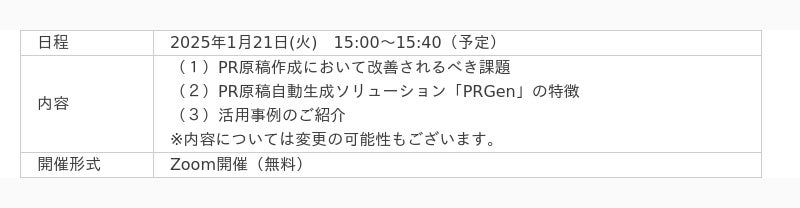 PR原稿自動生成ソリューション「PRGen」無料オンラインセミナー開催のお知らせ