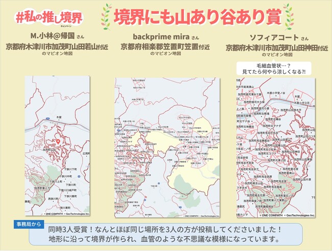 僭越ながら5つの推し境界を選出!3人同時受賞の境界は京都府木津川市付近