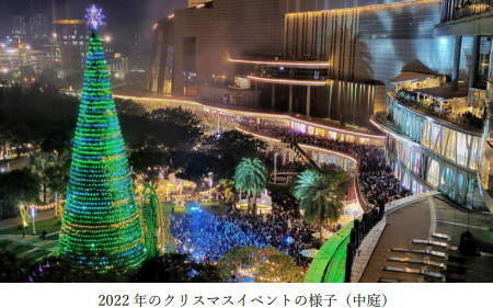 両施設では、吹き抜け部分やセントラルパークモールの広大な中庭を活用して、年間を通して多種多様なイベントを開催しており、これらのイベントは両施設の集客に大きな役割を果たすとともに、両施設の魅力の一つとなっています。中でも、毎年行われるクリスマスイベントでは、セントラルパークモールの中庭において、ジャカルタ最大規模のクリスマスツリーを目玉に様々な催物を実施しており、昨年12月25日には14万人の方々が訪れました。