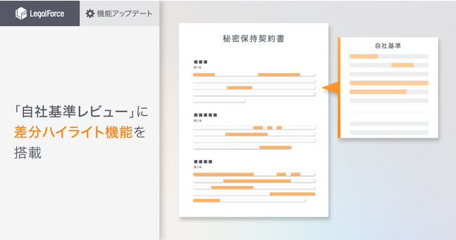 AI契約審査プラットフォーム「LegalForce」を提供する株式会社LegalForce(本社:東京都江東区 代表取締役:角田望、以下LegalForce)は、「自社基準レビュー」機能において審査中の契約書の条文と、自社基準のひな形の条文の差分がハイライトされる機能を搭載しました。