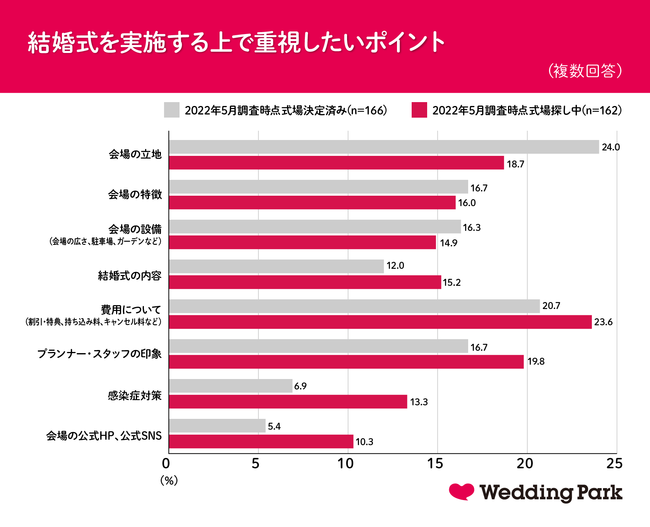 【重視ポイント】2022年5月時点で結婚式場を検討している方は、感染症対策よりも「プランナー・スタッフの印象」を重視