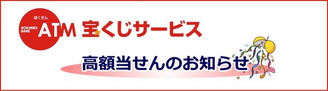 サービスの詳細および高額当せんの状況につきましては、こちら(https://www.hokugin.co.jp/cs/other/atm/index.html)をご参照ください。