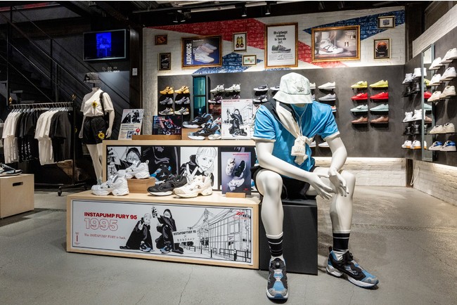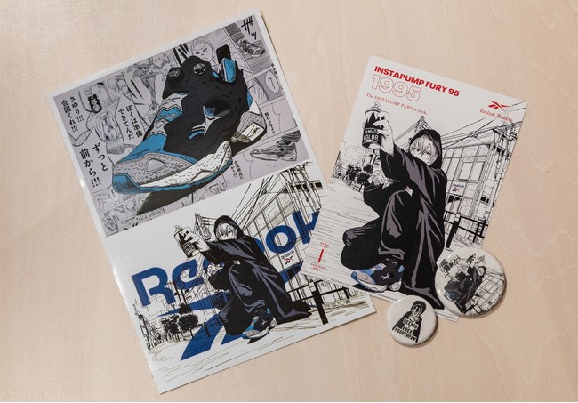 今回の企画では、人気漫画作品『左ききのエレン』とのコラボレーションが決定、作者・かっぴー先生描き下ろしの巨大ウィンドウアートをリーボックストア原宿にて、本日7月22日(金)より公開!さらに、かっぴー先生が描き下ろしたオリジナルストーリーの漫画を、リーボック公式Twitter、リーボック クラシックストア原宿店にて公開します。また、本キャンペーンに合わせて、幻のモデルと呼ばれる「INSTAPUMP FURY(インスタポンプフューリー)」の後期型「INSTAPUMP FURY 95」より、 “サックスブルー”を同日に発売。ご購入者には、『左ききのエレン』オリジナルデザインの特典を数量限定でご用意しています。
