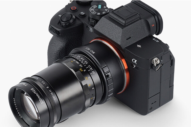 TTArtisan 100mm f/2.8 は、フィルムカメラでも使える「M42マウント」を採用したレンズですが、マウントアダプターを装着して、他種マウントの一眼レフカメラやミラーレスカメラで使用することができます。