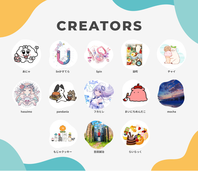 あにゃ/Snかすてら/Spin/染町/チャイ/hasuimo/pandania/フカヒレ/まいにちめんだこ/mocha/もじゃクッキー/吉田誠治/らいらっく