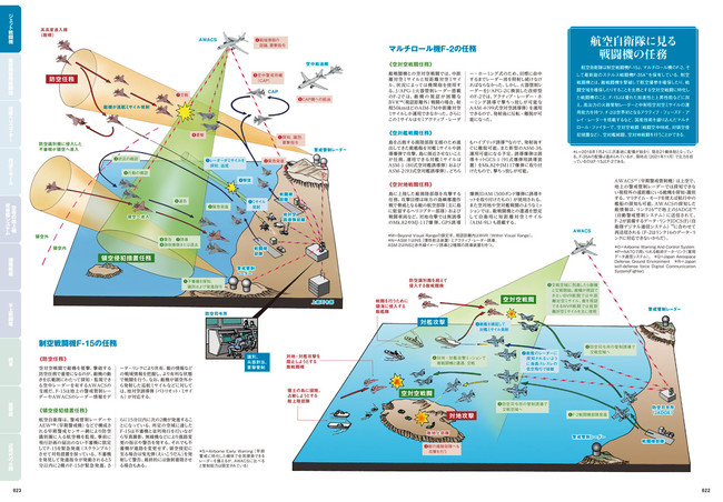 本書には、兵器図解イラストの第一人者の著者ならではの、工夫を凝らしたイラストが満載です。先述の、内部構造がわかる透視図解イラストのほか、どうやって使うのか、あるいは敵とどうやって戦うのかがわかる運用図解イラスト、パイロットなどの装備がわかる軍装イラスト、概念をわかりやすくまとめたイラストなど、多彩な表現でわかりやすさを追求しています。