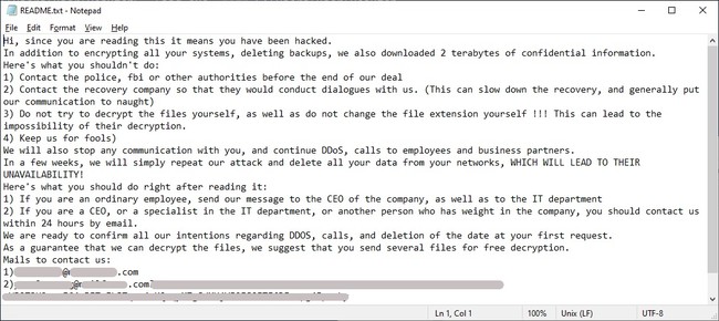 当社のテレメトリによると、Yanluowangは主に米国、トルコ、ブラジルの大企業に感染を試みています。サイバー犯罪者側のオペレーターが主に手動で感染先コンピューターのファイルを暗号化し、ファイル拡張子は「.Yanluowang」に変更されます。犯罪者が残したランサムノート(身代金を要求する通知)には、被害者が警察に通報すれば、感染したコンピューターの全てのファイルを削除し、その後もDDoS攻撃とその企業の従業員のコンピューターをランサムウェアに感染させ、企業全体を攻撃すると脅しています。