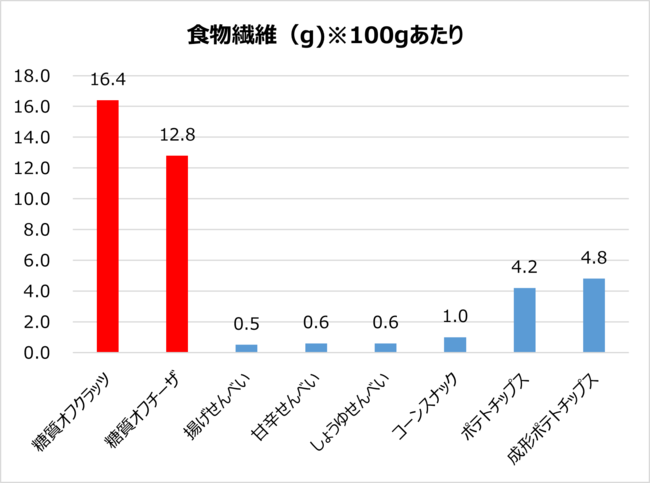 図1:スナックカテゴリーにおける食物繊維量比較