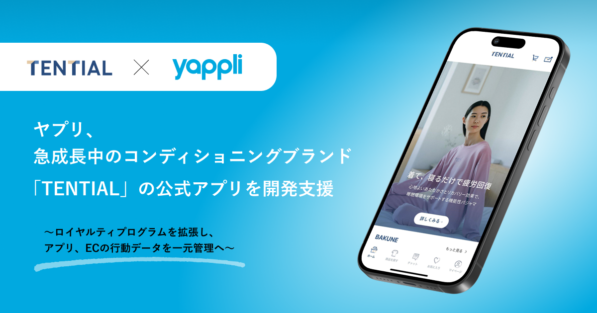 ヤプリ、急成長中のコンディショニングブランド『TENTIAL』の公式アプリを開発支援