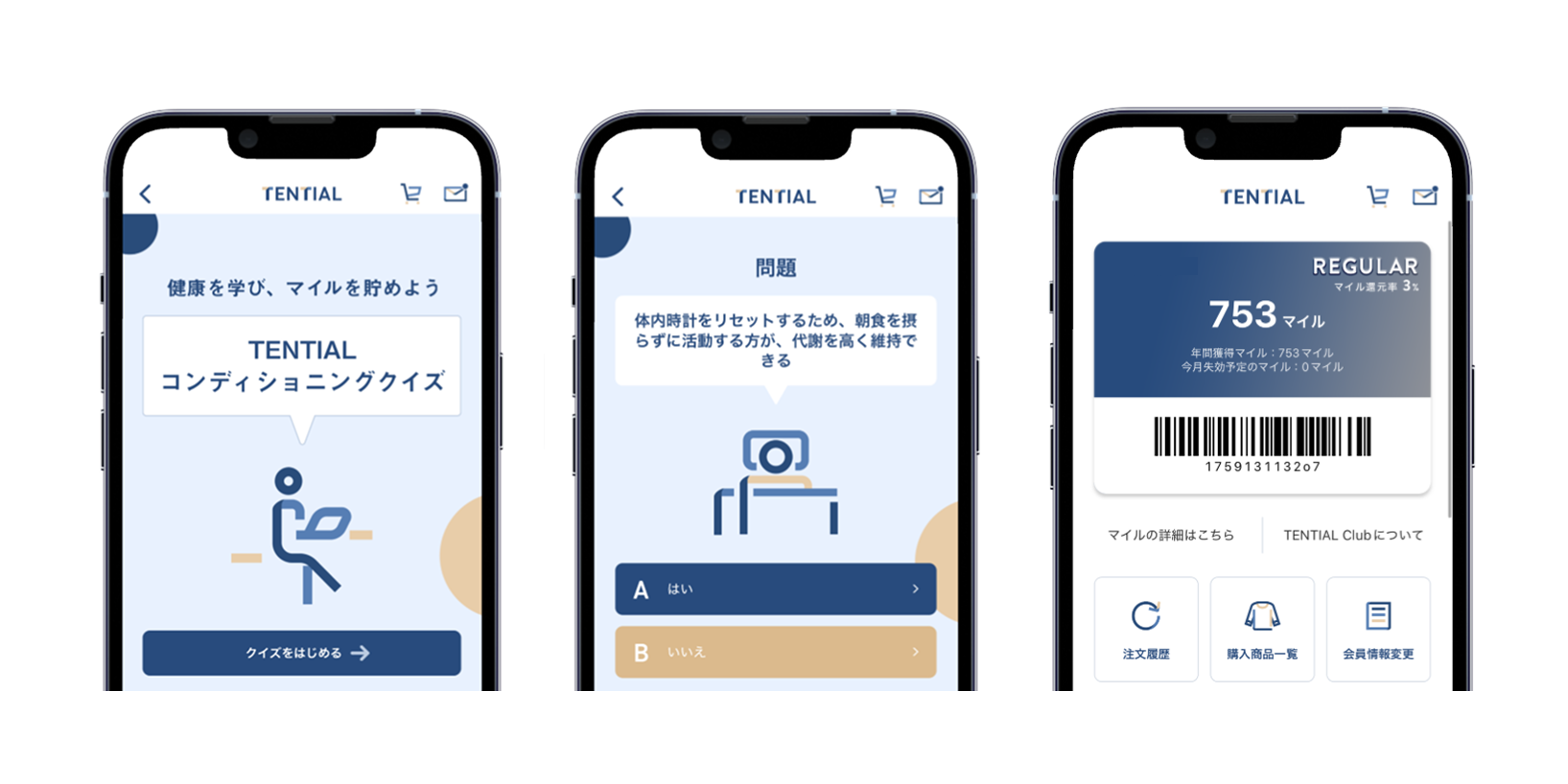 本アプリでは従来より運用していた「TENTIAL Club」をアプリにも拡張しています。ログインをすれば、顧客基盤との連携により会員情報が紐付き、マイル数と会員ランクをアプリ画面で簡単に確認することが可能です。