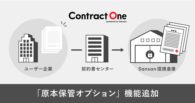 Sansan株式会社は、クラウド契約業務サービス「Contract One」に、「原本保管オプション」機能を追加したことを発表します。「原本保管オプション」は、SBSリコーロジスティクス株式会社と提携し、Contract Oneがスキャンしてデータ化した契約書の紙の原本を、ユーザー企業に代わってSansan株式会社が保管・管理するサービスです。