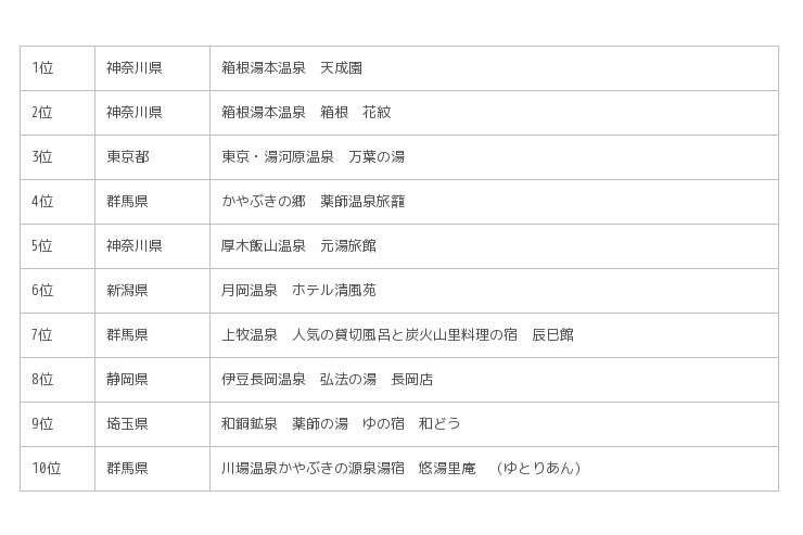 関東圏の人気日帰り温泉宿ランキング(※4)TOP10