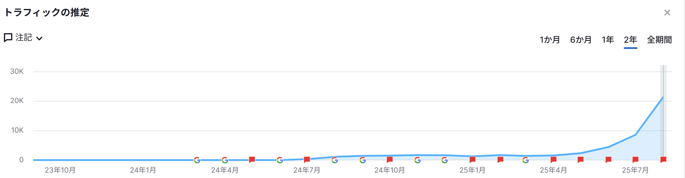 体制強化とSemrushの活用により、より質の高いコンテンツを効率的に作成するワークフローを構築できるようになりました。その結果、短期間でオーガニック流入を大きく伸ばすという目覚ましい成果につながったと思います。