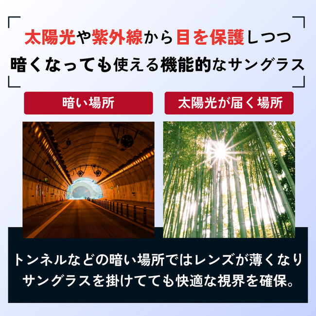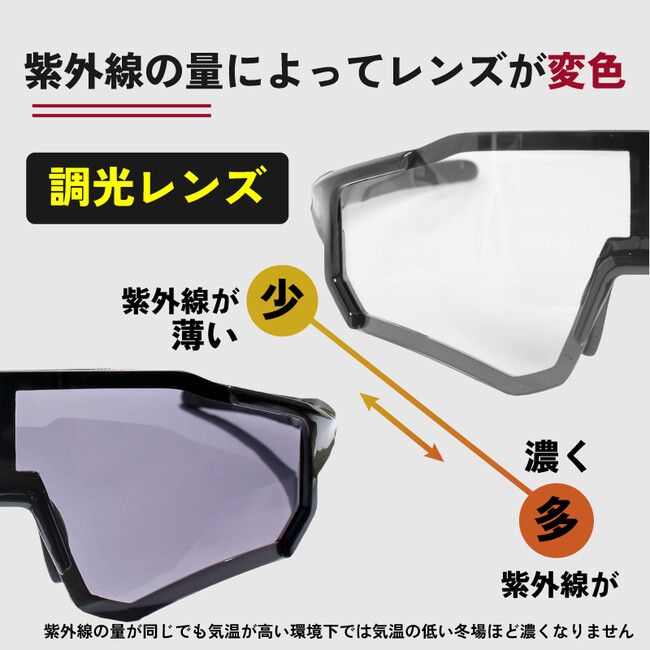 太陽光や紫外線から目を保護しつつ暗くなっても使える機能的な調光サングラス。