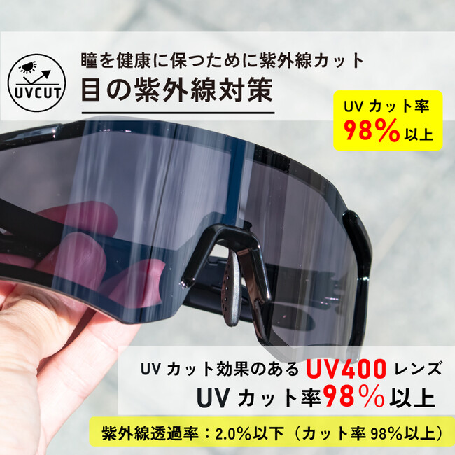 UVカット効果のあるUV400レンズ。UVカット率98%以上。