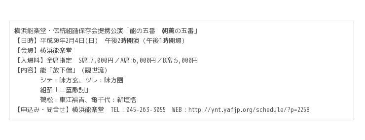 横浜能楽堂・伝統組踊保存会提携公演「能の五番 朝薫の五番」 第4回「放下僧」と「二童敵討」