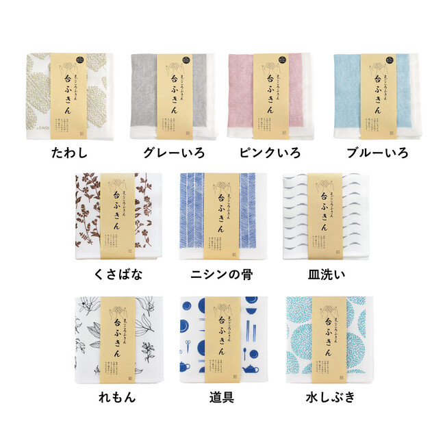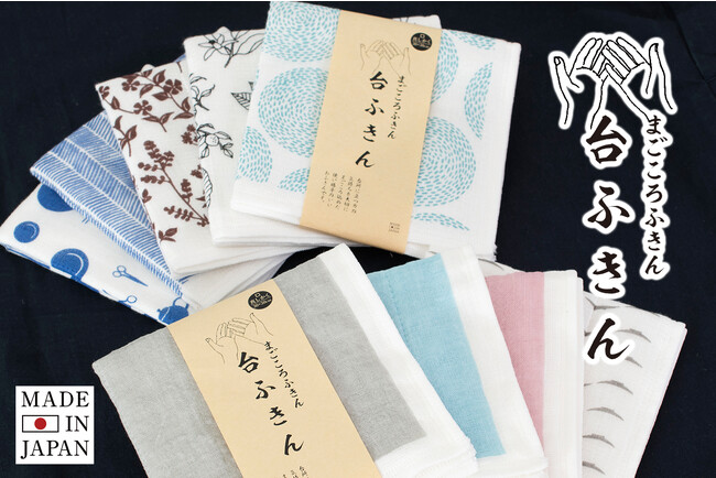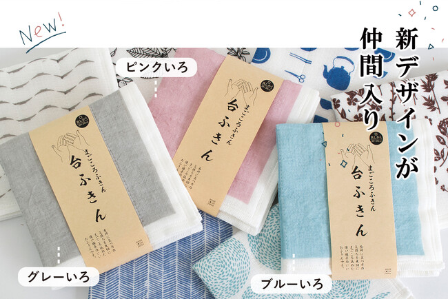 キッチン道具をあしらった落ち着いたデザインが人気の「まごころふきん 台ふきん 真しかく」から待望の新デザインが登場!
