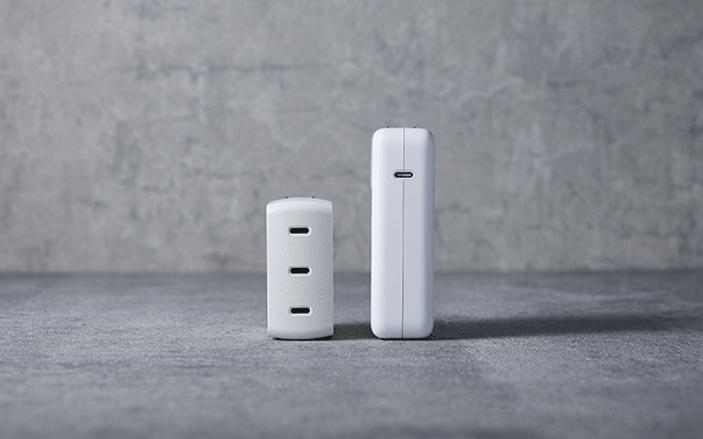 従来の140W充電器と比較しても、『NovaPort TRIO 140W』は3ポートを搭載しているにも関わらず、体積比約37%のサイズダウンを実現しました。