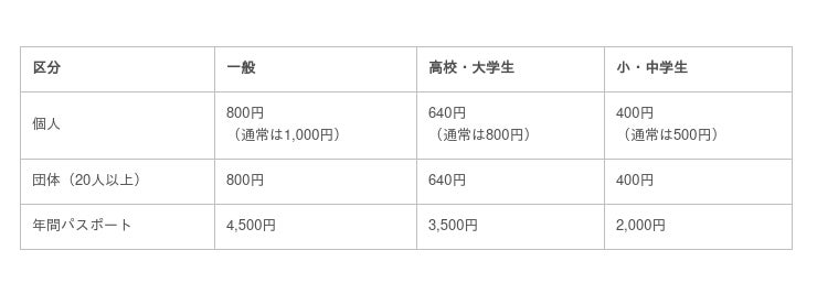 イベントの参加費は無料ですが、別途入館料が必要です。