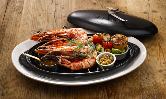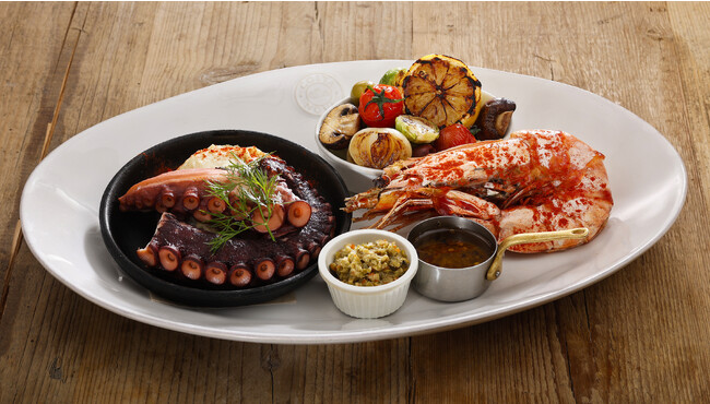 地中海料理は2010年に世界無形文化遺産に登録されたことでも知られています。地中海特有の野菜と果物、全粒雑穀類、スパイス、オリーブオイルを豊富に摂取し、適量のワインとともに楽しむ健康的な食文化が特徴です。今回のフェアでは、昨年ご好評をいただいた斧のような形がユニークな「トマホークステーキ」に加え、シズラー初登場となる「タコ」と、天然大海老「シータイガー」などシーフードをメインにし、グリーンオリーブやケーパーを合わせた南仏生まれの「タプナード」(薬味)や、ガーリックとアンチョビが香ばしい「アヒージョ風オイル」で楽しむグリル料理を提供します。