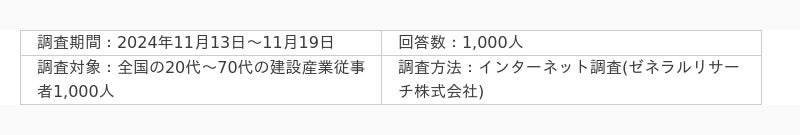 BuildApp(ビルドアップ)で建設DXに取り組む野原グループのBuildApp総合研究所(所在:東京都新宿区、代表:山梶真司)は、2024年6月の「第三次 担い手3法(品確法と建設業法・入契法の一体的改正)」の公布を背景に、全国の20代〜70代の建設産業従事者1,000人を対象に働き方改革や工期の適正化等に関する調査を行いました。