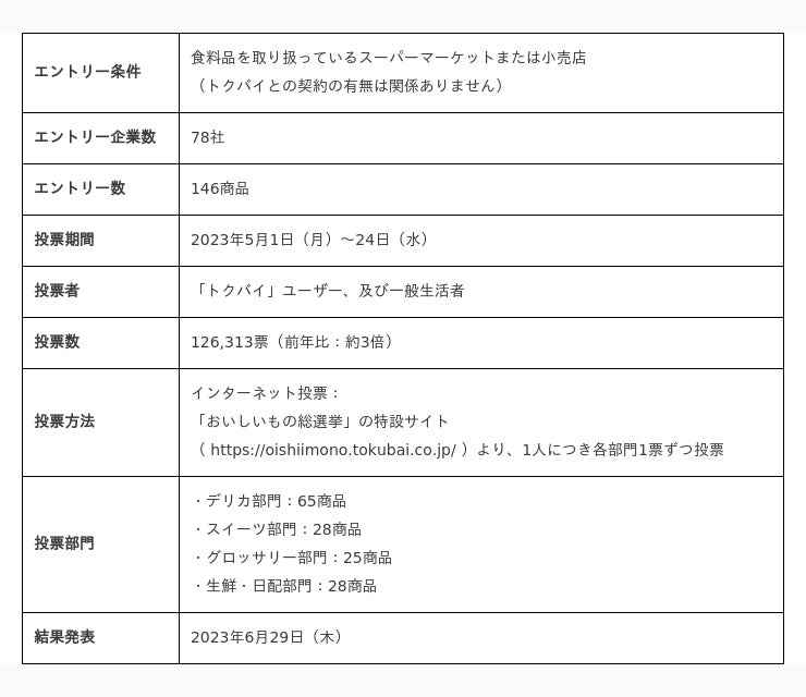 「おいしいもの総選挙」 特設ページ:https://oishiimono.tokubai.co.jp/award/2/index