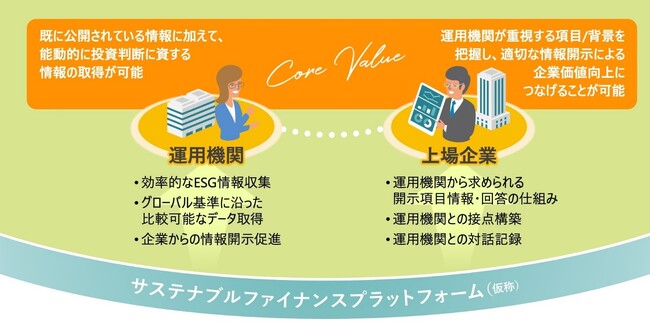 今回、運用機関と上場企業の間のESG情報開示に関する相互理解を深めるサービスの提供により、効果的・効率的な情報開示と運用機関の投資判断を促進します。これにより、高まるESG投資やESGマーケットの後押しをはかり、健全な市場の発展に貢献していきます。