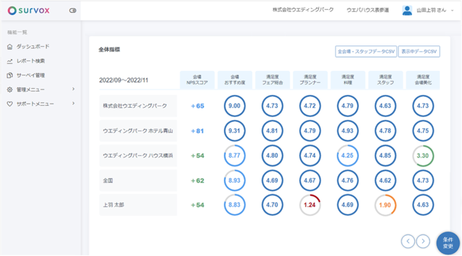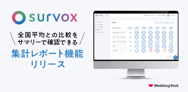 株式会社ウエディングパーク(本社:東京都港区、代表取締役社長:日紫喜 誠吾)のデジタル技術を活用したウエディング企業の変革を支援する専門組織「DX本部」は、ウエディング業界に特化したカップル向け満足度サーベイ「survox(サーヴォックス)」で「集計レポート機能」を2022年11月28日にリリースいたしました。